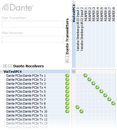 Note: Sources and destinations in Dante Via must have 'Enable Dante' checked to be visible in Dante Controller.
